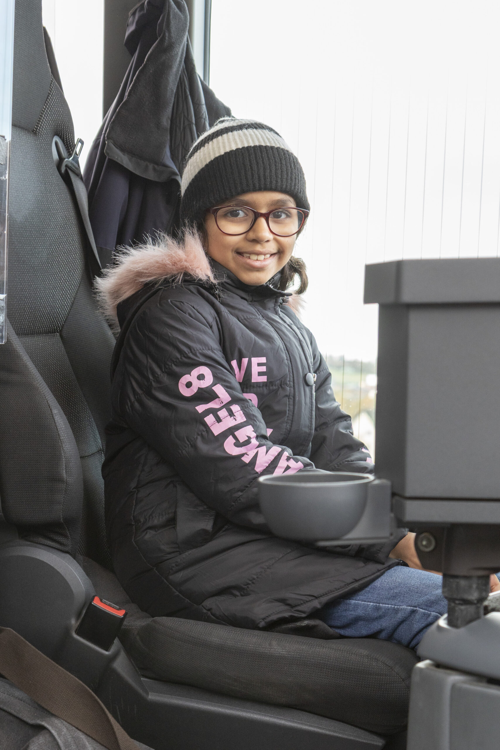 Für viele war das ein echter Aha-Moment. Asna durfte sich auf den Fahrersitz setzen und stellte fest, dass sie ein Kind, das direkt vor dem Bus entlangläuft, überhaupt nicht sehen kann. „Seitdem gehe ich nie wieder vorne am Bus vorbei“, sagte sie beeindruckt. Auch Lotte entdeckte etwas Neues: den kleinen Nothammer am Fenster, „mit dem man im Notfall die Scheibe einschlagen kann“.