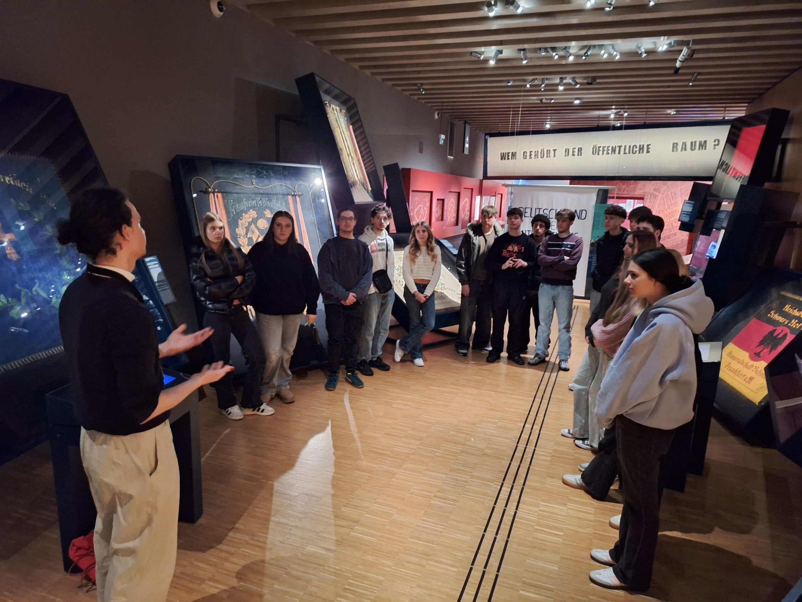 Zu Beginn erhielten die Kurse eine eindrucksvolle Führung durch die Ausstellung des Museums, die sich der Märzrevolution von 1848/49 widmete. Dort wurde deutlich, wie die Vision einer freiheitlichen Verfassung, Meinungsfreiheit und Bürgerrechte in einer Zeit formuliert wurde, in der solche Ideen noch revolutionär waren.